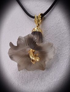 Gecko aus Rauchquarzblüte-Anhänger.www.maiersgoldschmiede.com