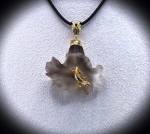 Gecko aus Rauchquarzblüte-Anhänger.www.maiersgoldschmiede.com