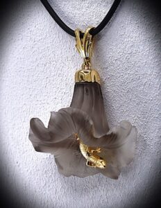 Gecko aus Rauchquarzblüte-Anhänger.www.maiersgoldschmiede.com