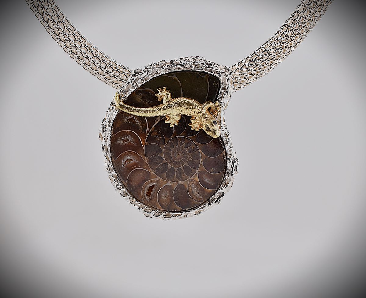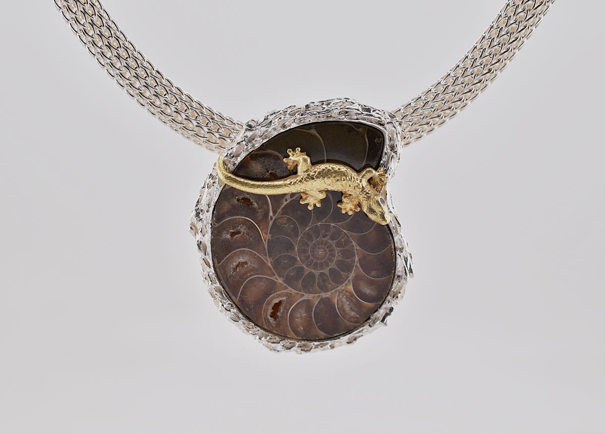 Gecko mit 2 schwarzen Brillanten in den Augen, 0,04 ct.